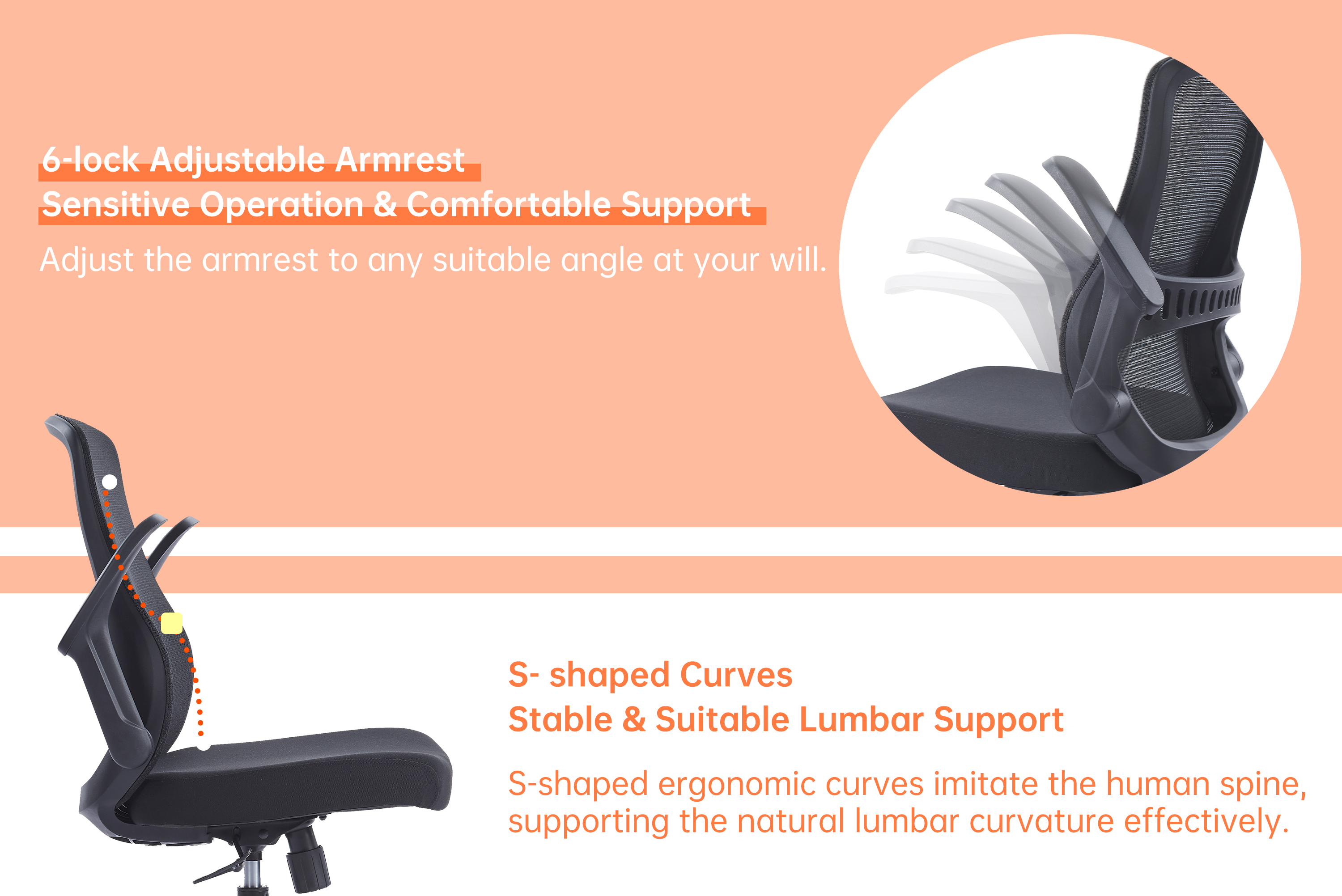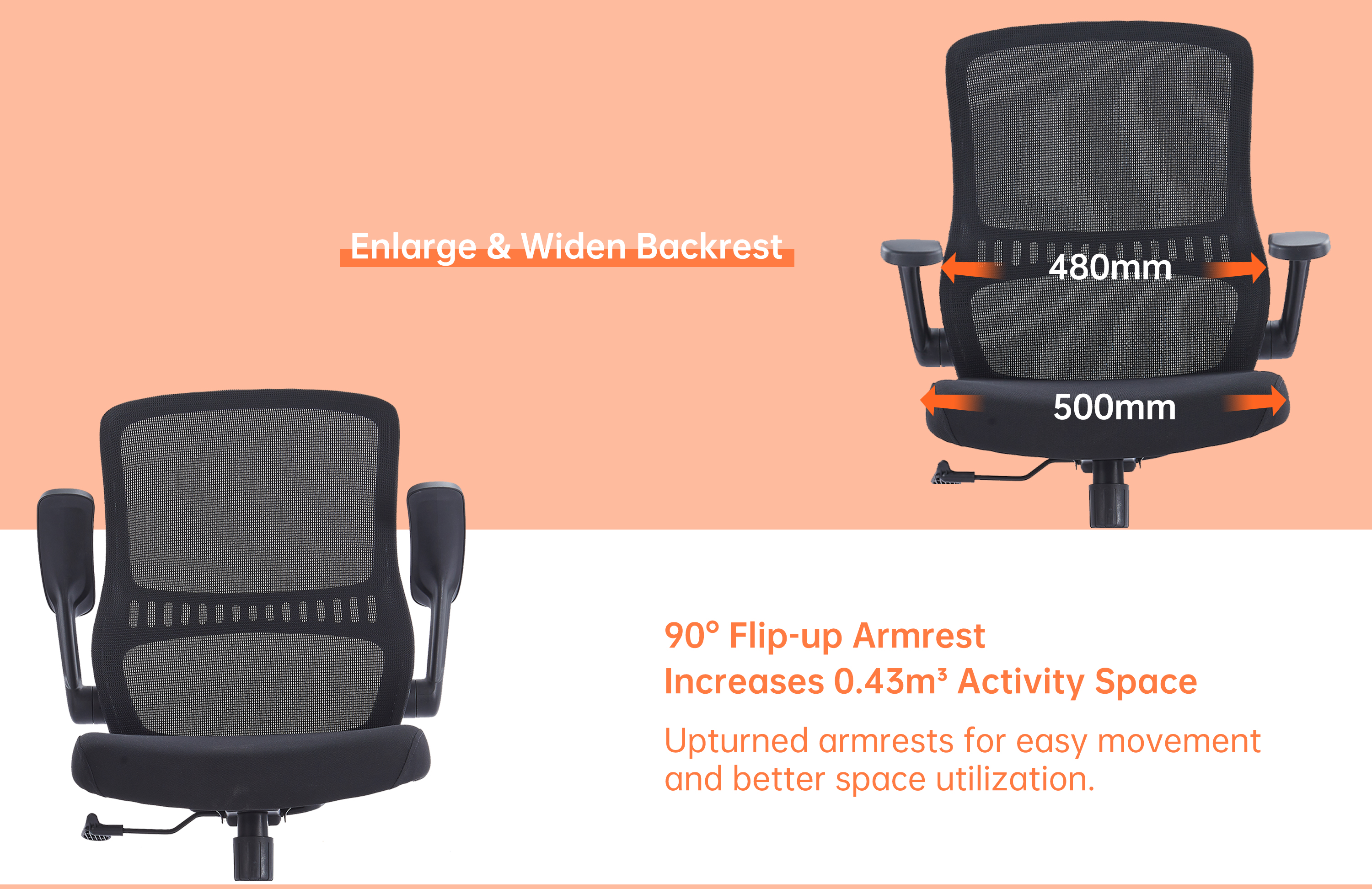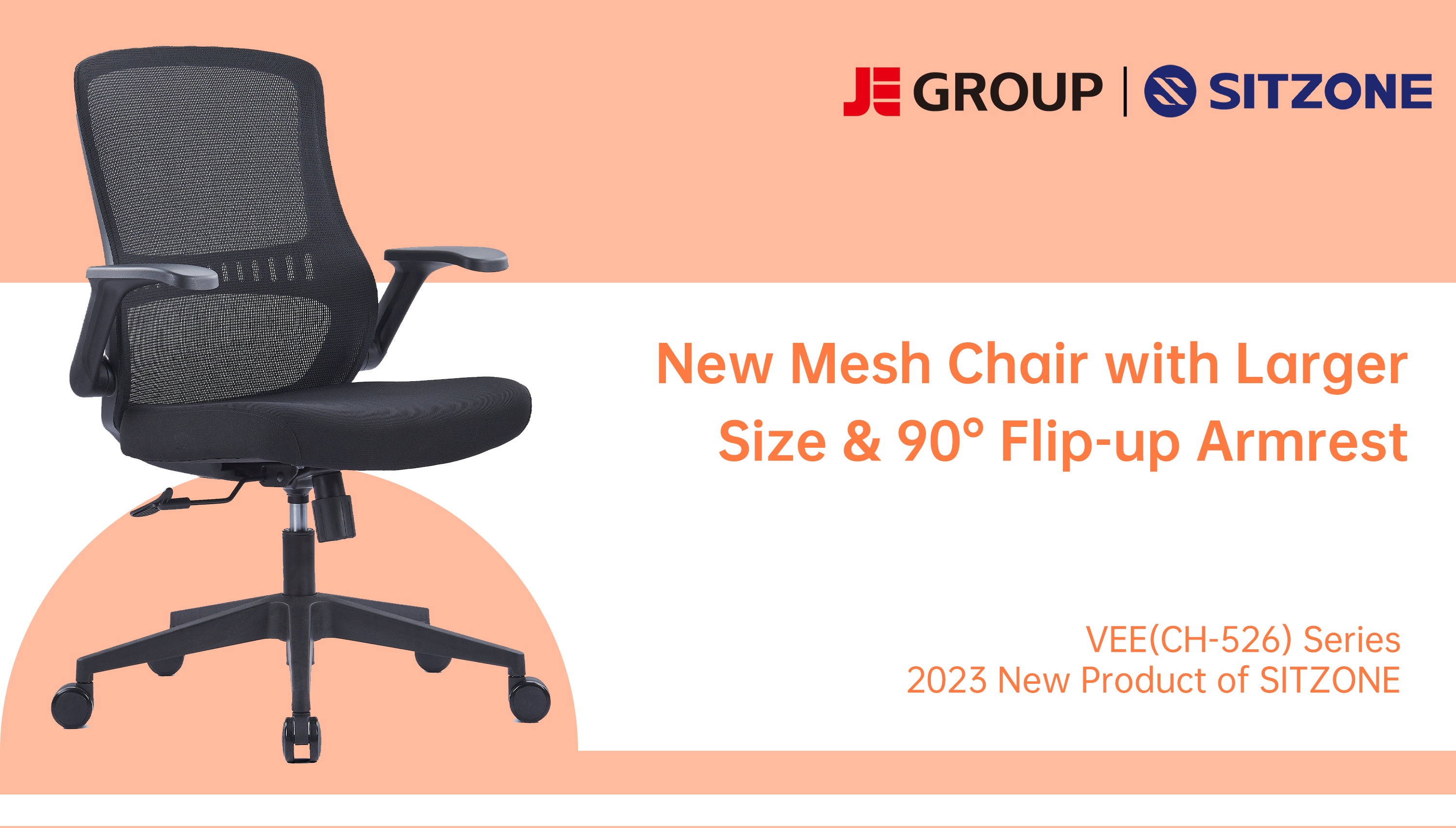 CH-526 | Нов мрежест стол с по-голям размер и повдигащ се на 90° подлакътник