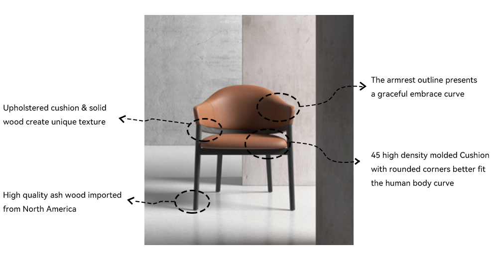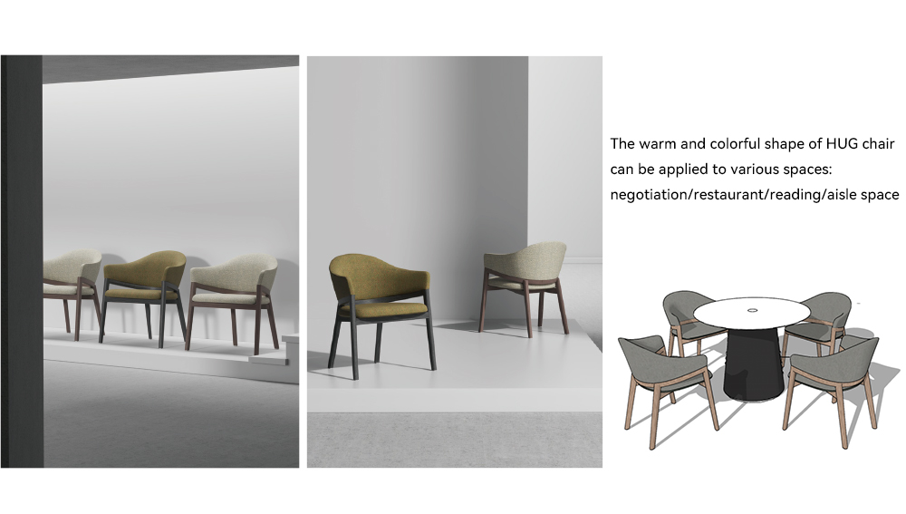 La chaise HUG extrait la courbe de lever les bras pour obtenir un câlin et la combine avec des matériaux chaleureux en bois massif pour créer ses émotions et ses rythmes uniques. Lorsque les utilisateurs utilisent la chaise, il semble qu'une mère se serre étroitement derrière eux, donnant à la chaise un nouveau sens de la vie.