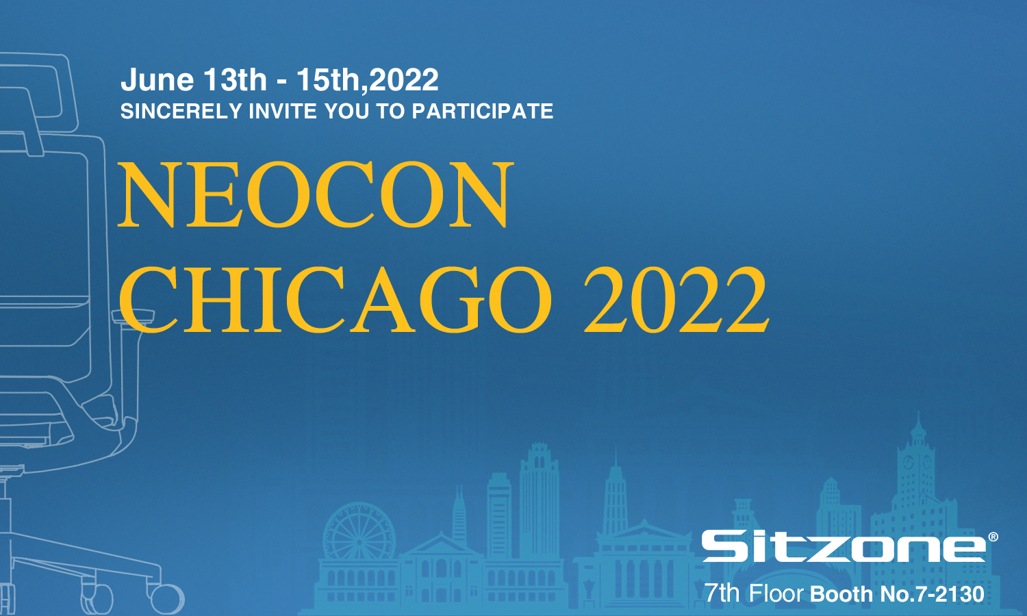 Foshan Sitzone Furniture Co., LTD participera au Neocon Chicago du 13 au 15 juin 2022. Notre société est au 7-2130. Bienvenue aux nouveaux et anciens clients à nous rendre visite.