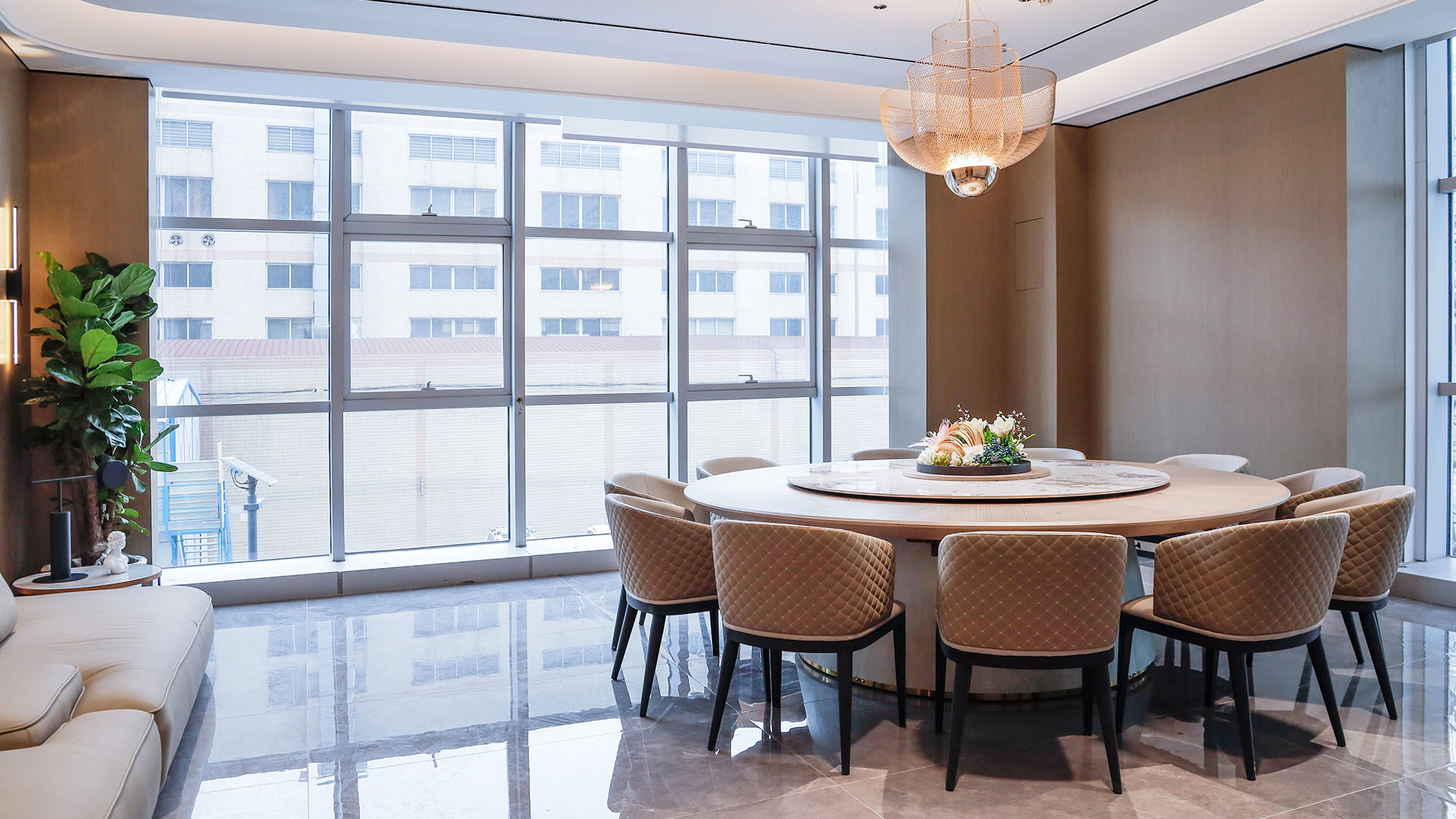 JE Furniture ndhukung filosofi "wong-wong", tansah setya nggawe lingkungan kerja lan urip sing nyaman lan nyenengake kanggo para karyawan. Kantin staf ing markas Foshan anyar —JE Intelligent Furniture Industrial Park — dumunung ing lantai siji lan loro ing JE Dream Home ing Distrik Utara. Interioré nduweni desain gaya Jerman, sing diilhami saka motto "Sunshine Accompanying All Year Round," nyedhiyakake ruang makan sing artistik lan nyaman kanggo karyawan.