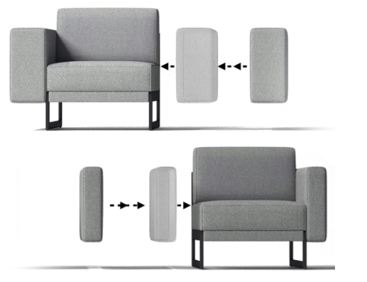 Підлокітники доступні в тонкій і товстій конфігурації, які можна легко замінити шляхом розбирання. Товстий підлокітник має розширену та потовщену конструкцію на 22 см для лежання та сидіння; тонкий підлокітник невеликий за розміром і економить місце.