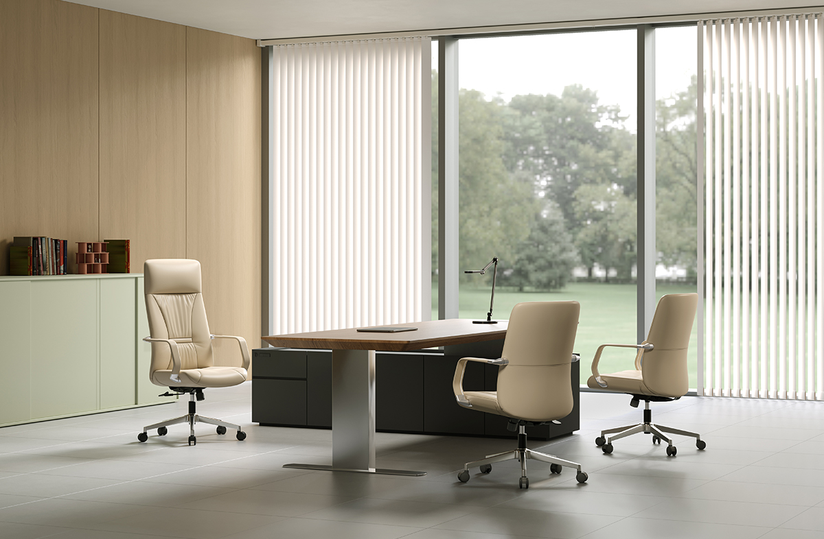 A modern reinterpretation of a classic leather chair, featuring clean lines and ergonomic support that follows the natural curve of the spine.