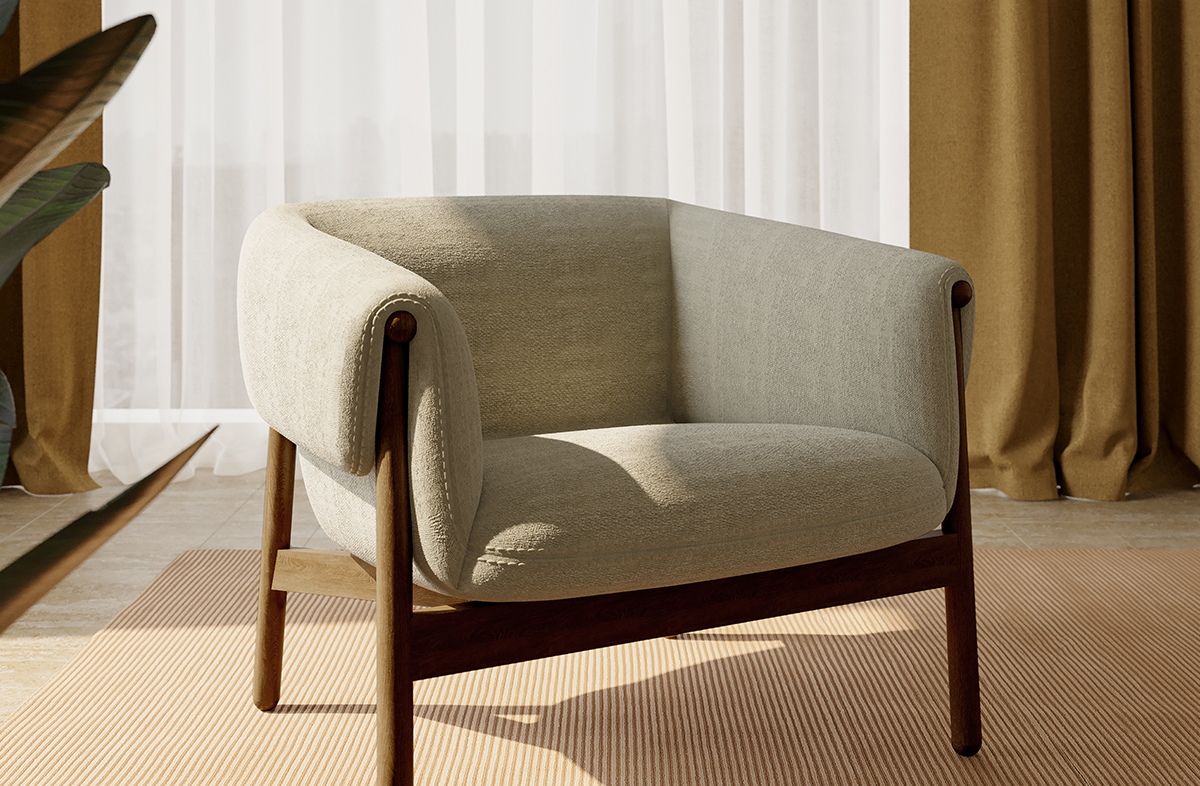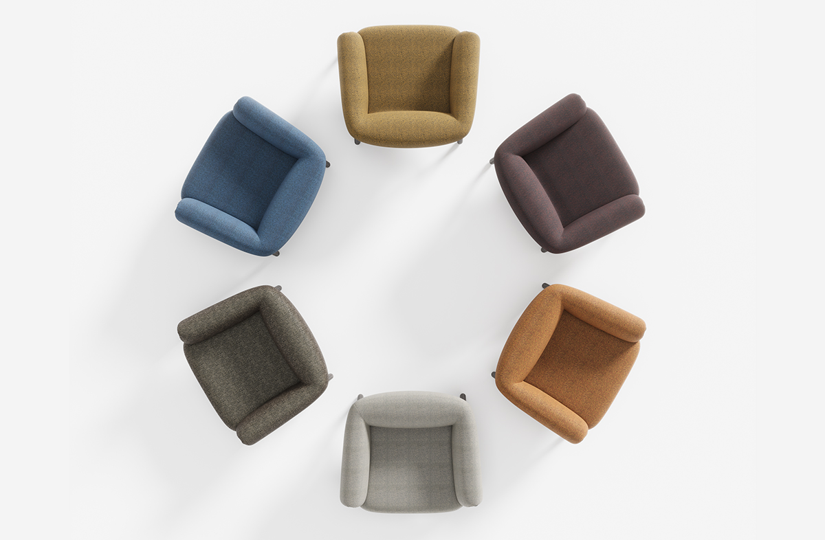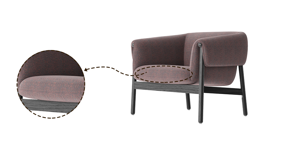 Folded upholstery captures the fluid elegance of jellyfish, creating a dynamic and visually striking form while providing ergonomic comfort and a naturally supportive seating experience.