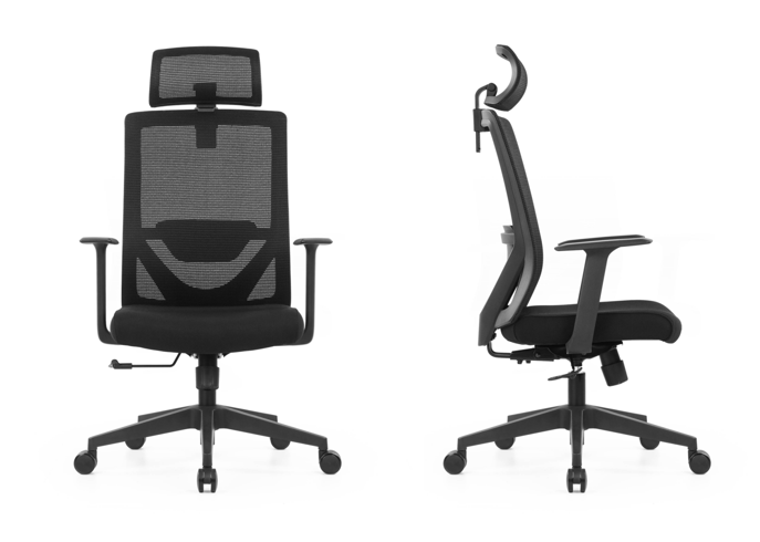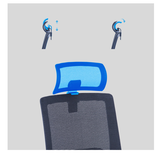 The mesh headrest ensures breathability in direct contact with the skin of the human head, and the lifting and swivelling functions can be adapted to the needs of people of different heights.