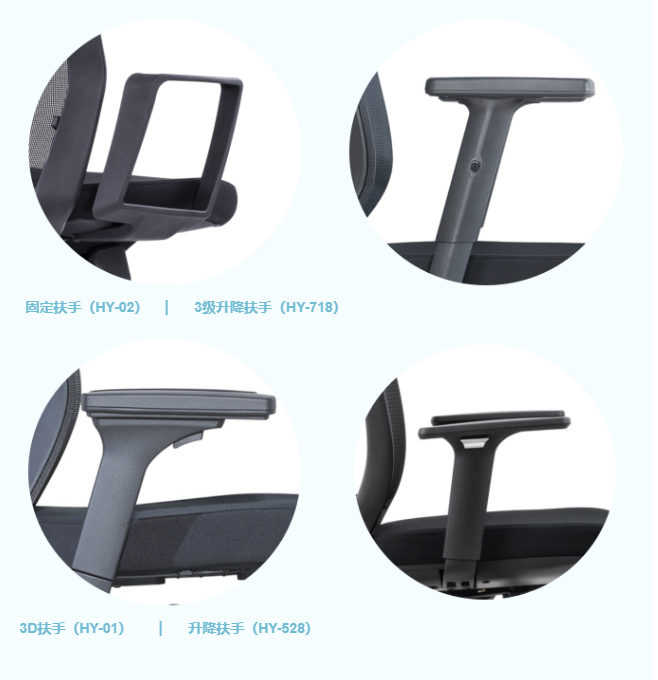 Armrests are designed to be fixed, adjustable, or in 3D, accommodating users' natural habits. They provide effective arm support and can be adjusted for a user's natural usage.