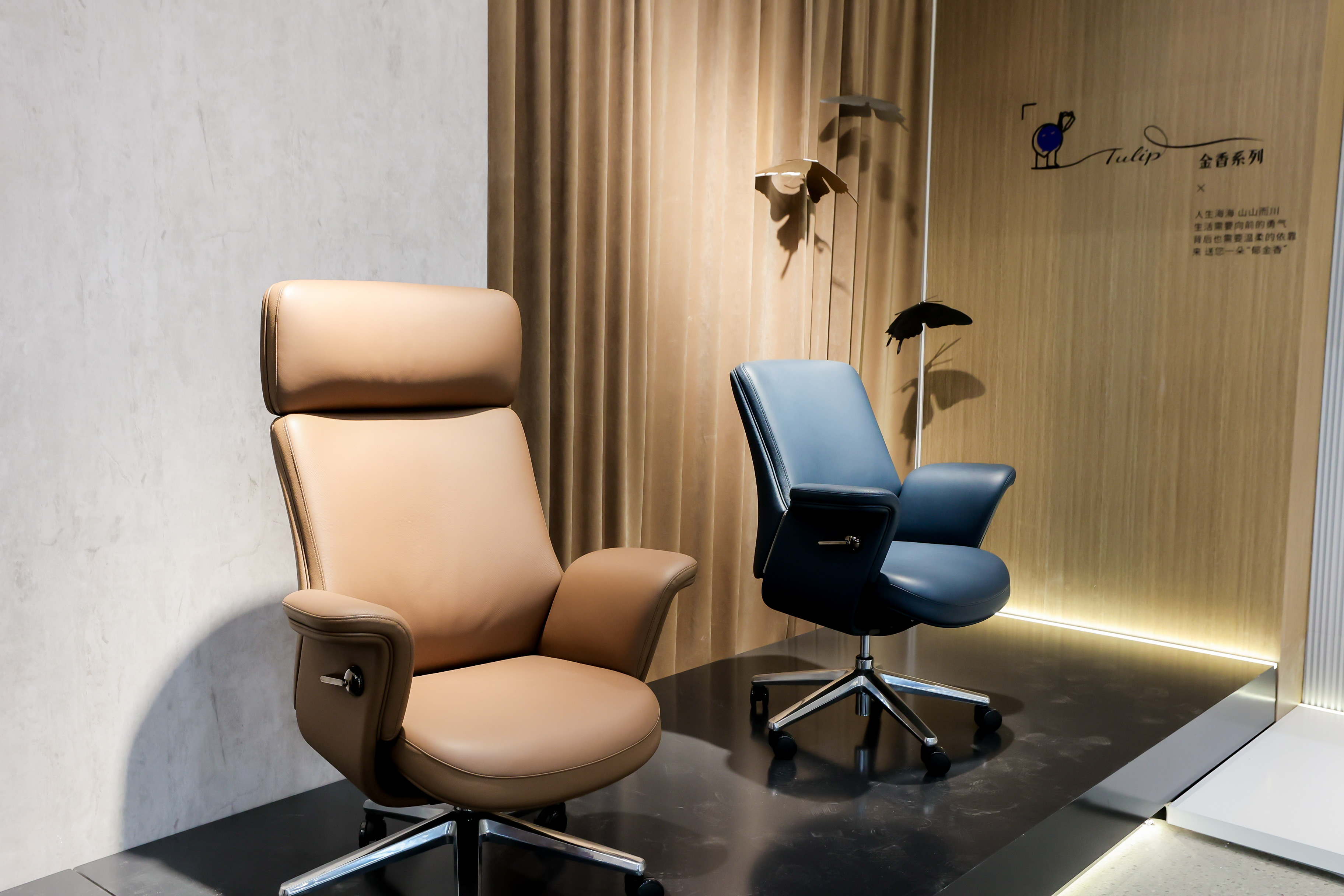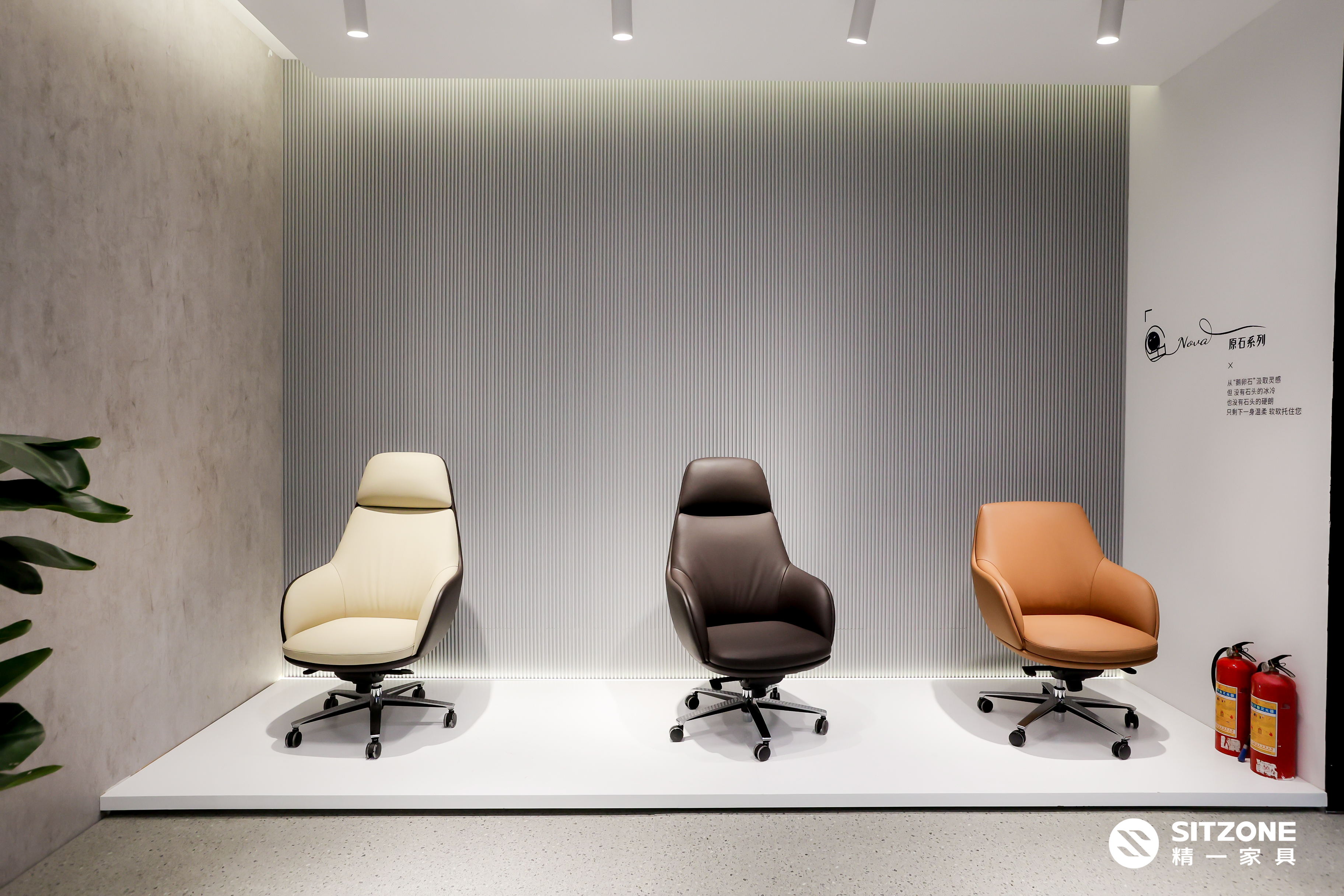 By utilizing innovative structural materials, Sitzone deeply integrates " Frontier design " with "Scientific Rigor." The minimalist appearance meets the aesthetic needs of the new generation of executives, achieving a perfect balance between functionality and appearance through moderate curves. The product accurately outlines the curvature of the chair back and seat, once again reshaping the intimate relationship between office chairs and managers. It provides solutions for executive and conference spaces with more experiential and valuable feelings in the office space. In 2023, seven trendy new leather chair series are launched: MITT 【DONATI line control chassis design, tilt angle controlled by the waist】; BUTTERFLY 【One-button control for instant comfort】; BELIE 【Cross-border fusion of clothing strap elements to create a three-dimensional sense】; SAIL【Integrated sailboat design, fitting and supporting the body comfortably】; COZY【Arc-shaped integrated seat-back scientifically relieves back pressure】; PISCES 【In-situ locking chassis, real-time support of synchronous tilt】; EXQULA 【"L"-shaped integrated seat-back, more stable real-time support】.